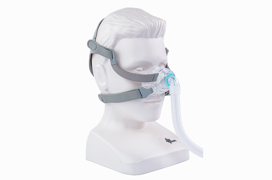 A máscara conta com orifícios de ventilação com dispersão em anel, que contribuem significativamente para otimizar o controle de ruído e minimizar o incômodo para quem dorme ao seu lado.